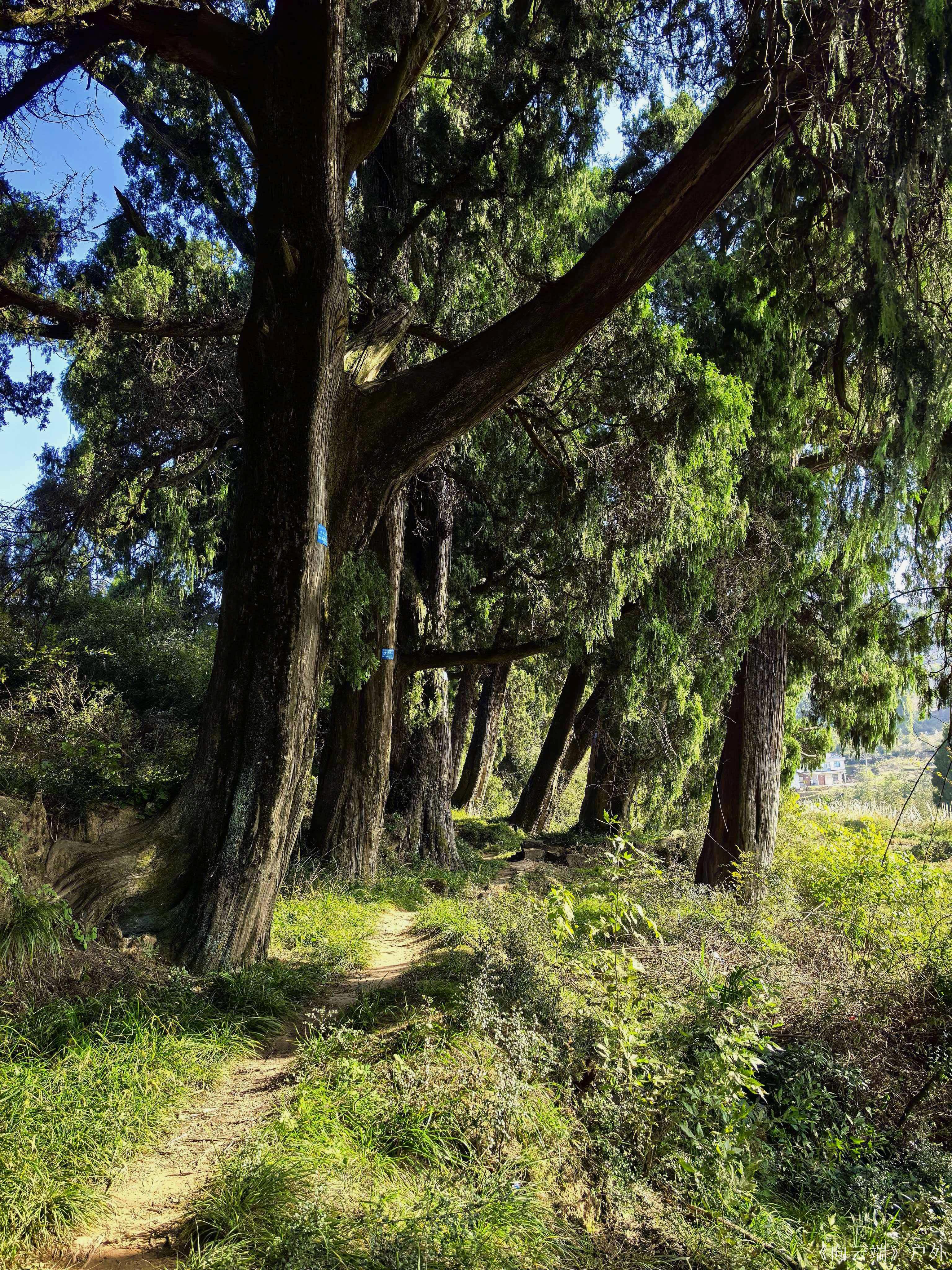 小垭子到古楼铺的徒步路线是翠云廊南线白龙段的精华部分,有两千多棵古树,古柏密度超高,遮阴率达90%以上,部分古柏树龄超3000岁。 古楼铺是古代驿站之一,曾是商旅歇脚、官府传递文书的中转站。走在这条古道上,仿佛能穿越时空,看到秦灭蜀时的金戈铁马和三国时期张飞镇守巴西郡的英勇场景。 全程约12公里,99%是平缓的土路,只有1%的坡路,对膝盖非常友好,适合新手和亲子徒步。