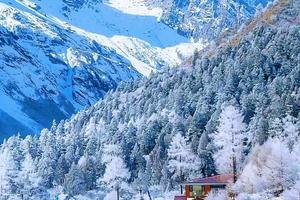 毕棚沟旅游景区是国家生态旅游示范区,国家4A级风景区,中国十大生态旅游景区,中国十大经典徒步穿越线。每年10月底毕棚沟进入雪季,有一层薄雪,雪山配上彩叶林变成了银装素裹的冰雪世界,壮观的雪山、漫山红叶,彩林满目,宛如一个冰雪童话世界。