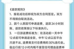 10、本次活动风雨无阻。领队有权决定因天气情况或其他不可抗拒因素发生时,进行行程路线、出发时间、以及各种情况的变更和调整、参与人员须务必服从领队的安排。因个人不遵守活动规定和领队的安排、以及违反活动场地的安全规定、地方习俗、而自行其事造成的后果,除自负其责之外,还应对因此给他人造成的损失负全责。
