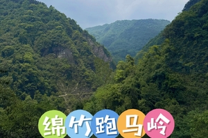 绵竹跑马岭承载着明末刘天关练兵跑马的历史传说,徒步大环线全程14公里,过程中能感受到浓厚的历史氛围。这里是被茂密山林环抱的自然秘境,徒步途中有森林、溪流、瀑布等景观,还能在山顶俯瞰绵竹的壮丽景色。